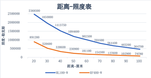 FM100L-W光源與FR400F-W光源的照度對比圖